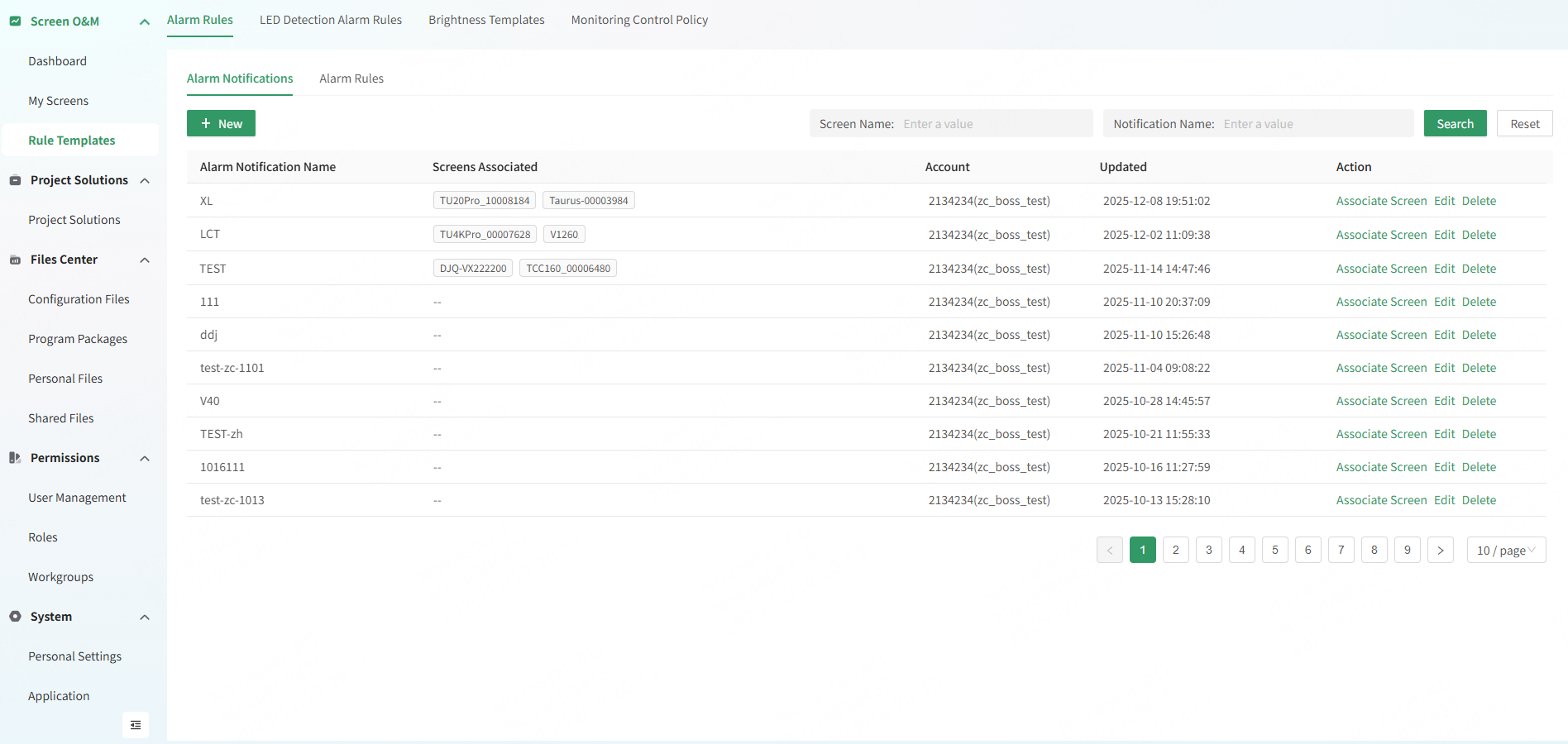 - From the navigation bar on the left, choose Screen O&M > Rule Templates to access the rule template management page.