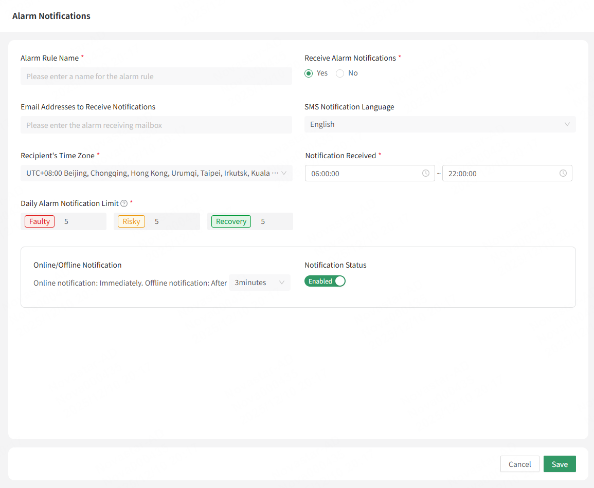 - Choose whether to receive alarm notification. If you want to receive it, enter an email address that receives the notification. Otherwise, you will not receive the alarm information.