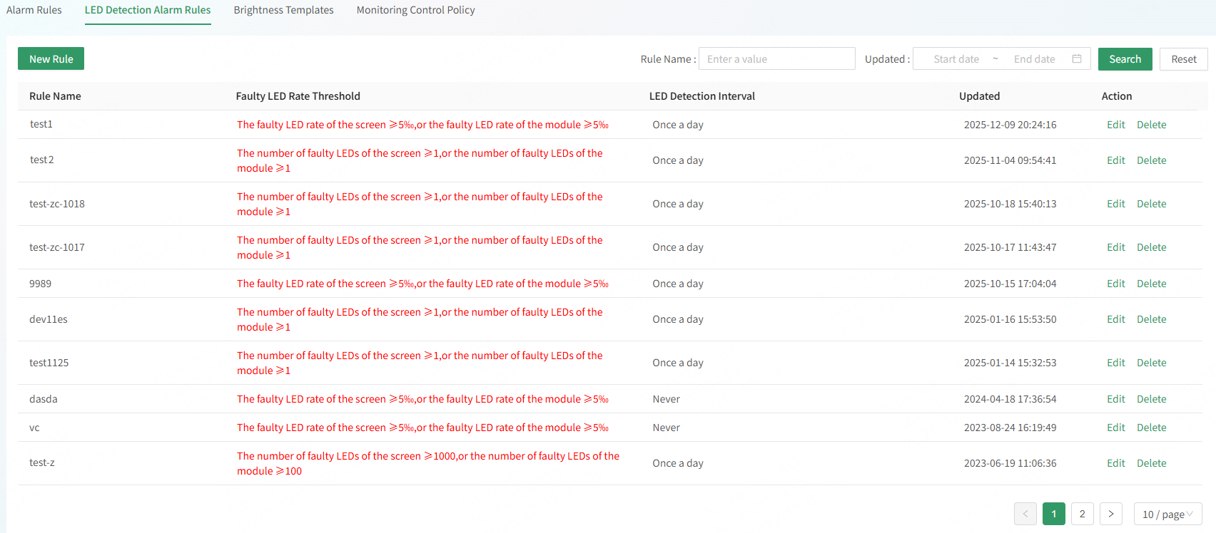 - On the LED Detection Rules tab page, click New Rule to create an LED detection rule.