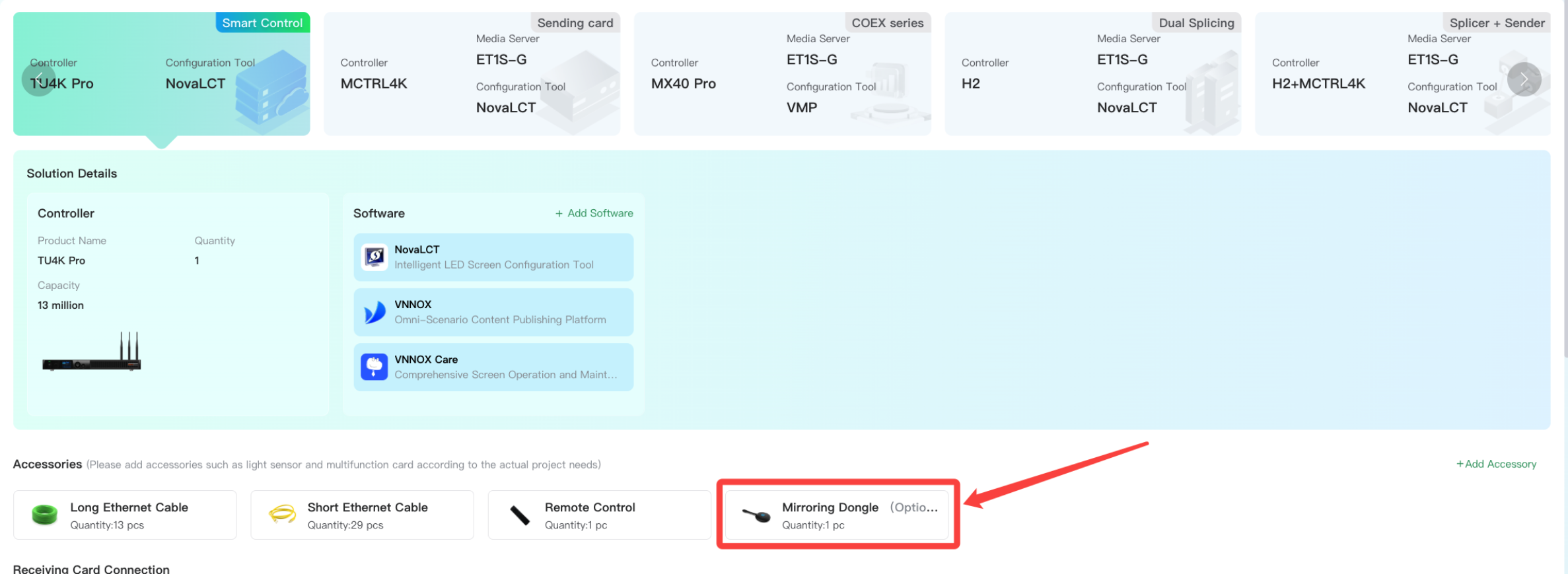 a. When the receiving card connection is changed from COEX, the number of primary Ethernet cables remains unchanged.